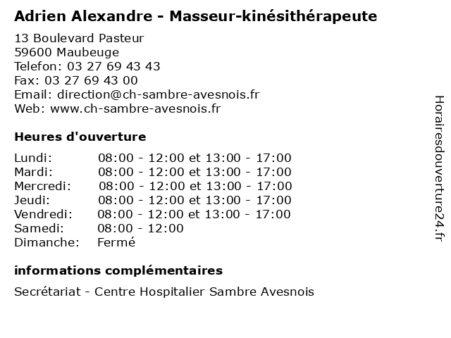 | Mardi | 08:00-12:00 et 13:00-17:00 |