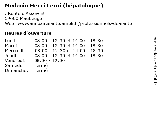 | Lundi | 08:00-12:30 et 14:00-18:30 |