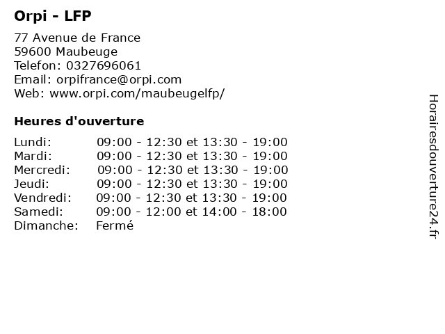 | Lundi | 09:00-12:30 et 13:30-19:00 |