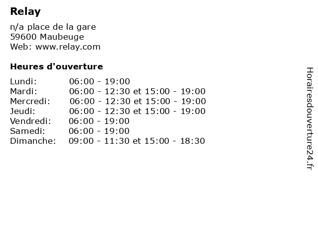 | Mercredi | 06:00-12:30 et 15:00-19:00 |