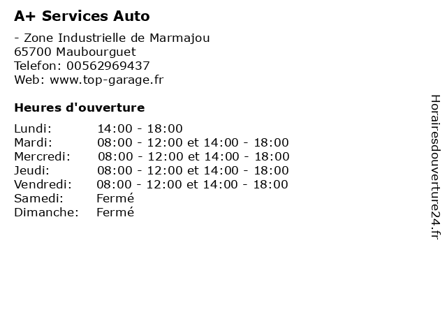 | Mardi | 08:00-12:00 et 14:00-18:00 |