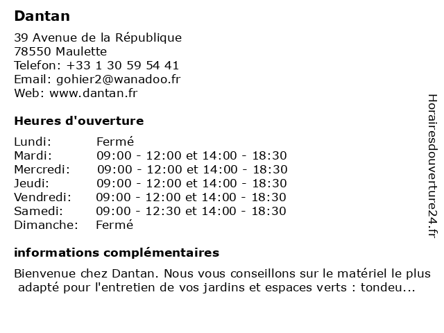 | Samedi | 09:00-12:30 et 14:00-18:30 |