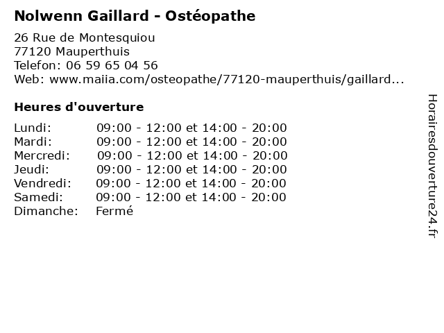 | Lundi | 09:00-12:00 et 14:00-20:00 |