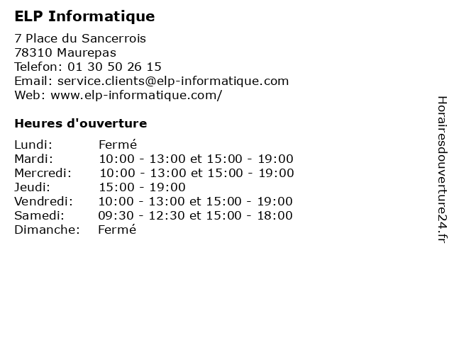 | Mardi | 10:00-13:00 et 15:00-19:00 |