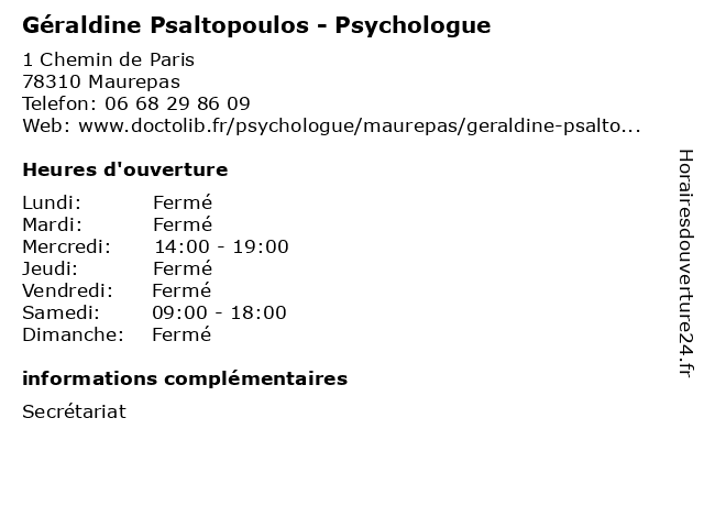 Termes de recherche pour Géraldine Psaltopoulos - Psychologue:folie, géraldine, psychiatrique, psychiatrie, psychologue, psychiatre, psaltopoulos |