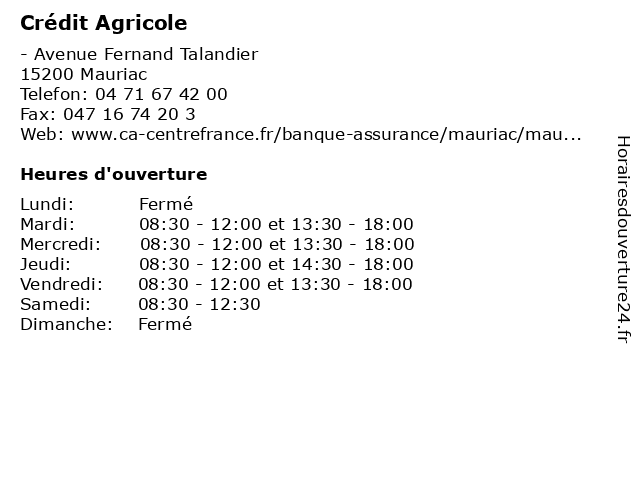 | Mardi | 08:30-12:00 et 13:30-18:00 |