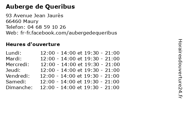 | Mardi | 12:00-14:00 et 19:30-21:00 |