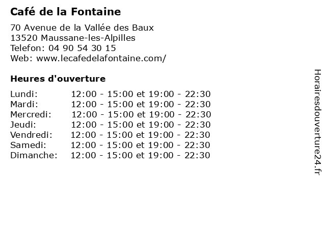 | Vendredi | 12:00-15:00 et 19:00-22:30 |