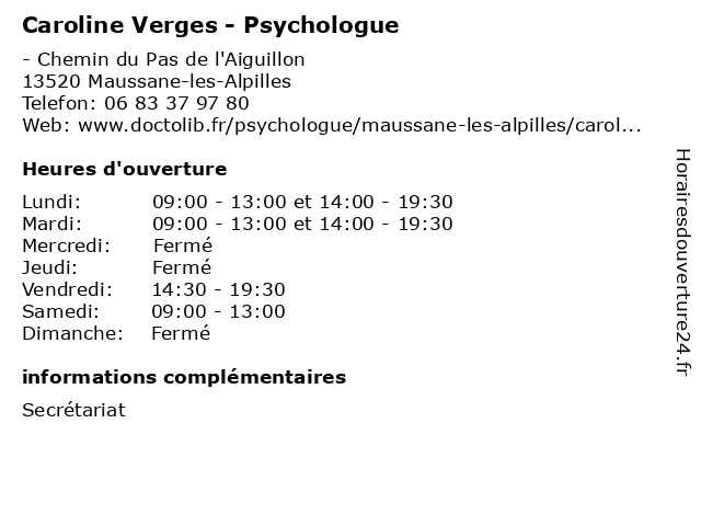 | Lundi | 09:00-13:00 et 14:00-19:30 |