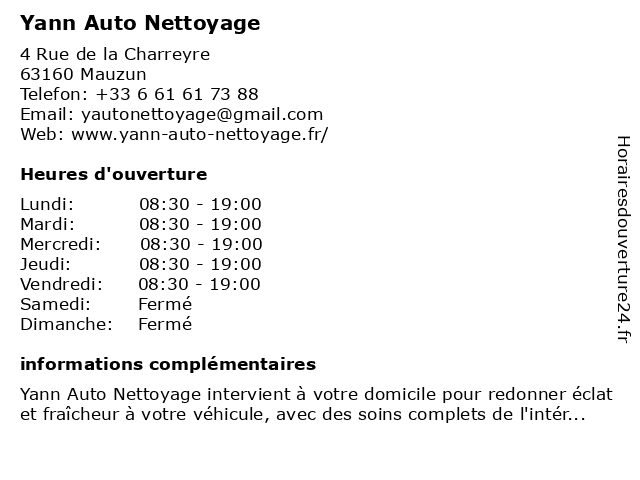 | Lundi | 08:30-19:00 |