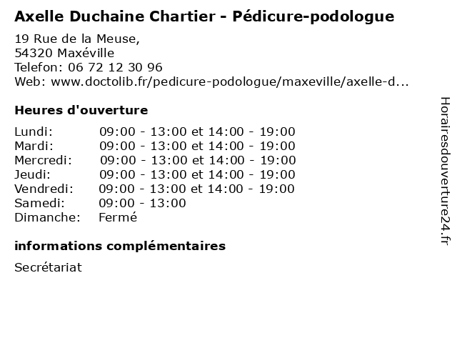 | Mardi | 09:00-13:00 et 14:00-19:00 |