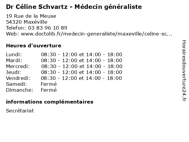 | Lundi | 08:30-12:00 et 14:00-18:00 |