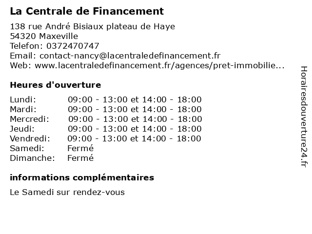 | Lundi | 09:00-13:00 et 14:00-18:00 |