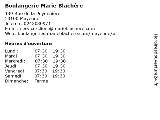 | Samedi | 07:30-19:30 |