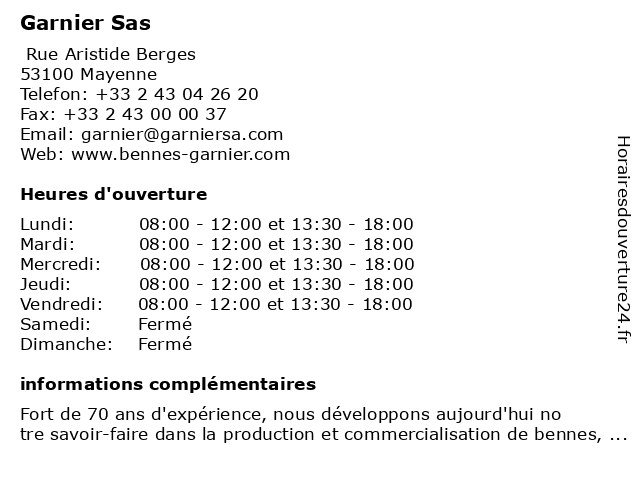 | Mercredi | 08:00-12:00 et 13:30-18:00 |