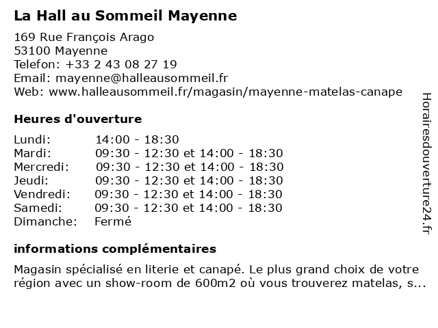 | Mardi | 09:30-12:30 et 14:00-18:30 |
