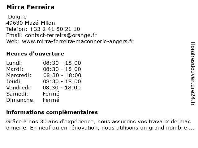 1 2 Venisse Ferreira et Associes (Distance: 28,08 km) 13 Rue du Marché au Blé, 72200 La Flèche associes, et, ferreira, venisse 3 Agence Topographique Chaussepied Ferreira (Distance: 28,38 km) 32 Rue Moïse Ossant, 49400 Saumur agence, chaussepied, ferreira, topographique 4 Couverture Du Loir Eirl-Ferreira (Distance: 43,89 km) Le Verger, 72800 Aubigné-Racan couverture, du, eirl, ferreira, loir 5 Ferreira Mickaël (Distance: 55,84 km) Rue de Rigny Usse, 37130 Lignières-de-Touraine ferreira, mickaël |