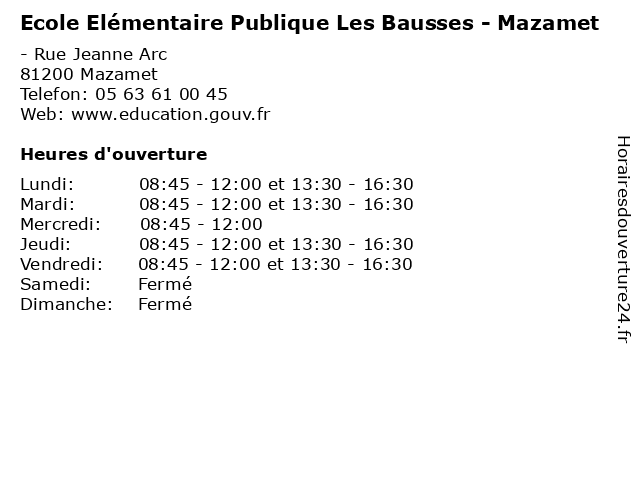 | Lundi | 08:45-12:00 et 13:30-16:30 |