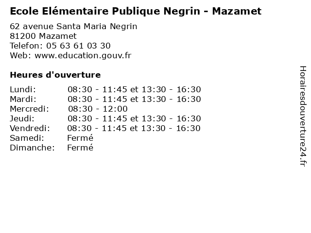 | Mardi | 08:30-11:45 et 13:30-16:30 |