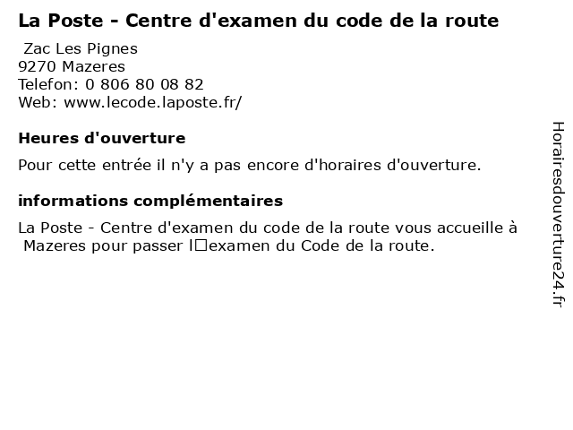 | Appeler La Poste - Centre d'examen du code de la route | |