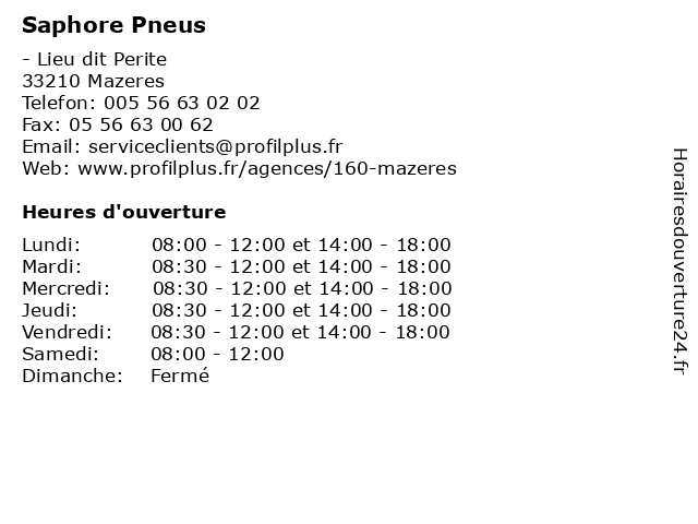 | Mardi | 08:30-12:00 et 14:00-18:00 |