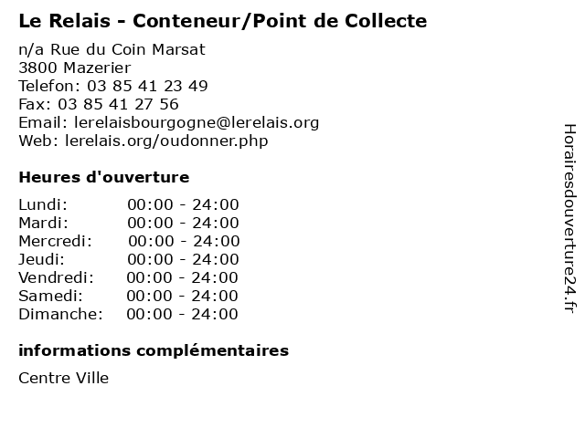Termes de recherche pour Le Relais - Conteneur/Point de Collecte:relais, le, de, vêtements, point, collecte, dons, conteneur/point |
