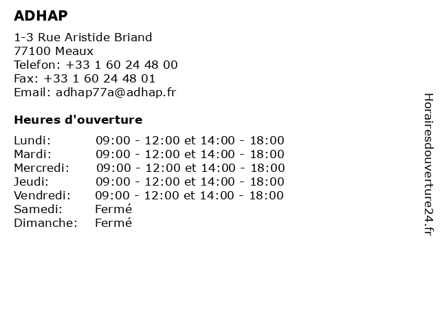 1 Adhap Services (Distance: 0,39 km) 35 Rue Faubourg Saint Nicolas, 77100 Meaux adhap, aide aux seniors, aide à domicile, services, services® 2 Adhap Services (Distance: 28,54 km) 91 avenue Anatole France, 93600 Aulnay sous Bois adhap, aide, domicile, services 3 Adhap Services (Distance: 39,47 km) 17 Rue du Gord, 91800 Boussy Saint Antoine adhap, aide, domicile, services 4 Adhap Services (Distance: 42,57 km) 140 Bis rue de Rennes, 75006 Paris adhap, aide, domicile, services 6 Adhap Services® (Distance: 43,88 km) 47 Rue Lecourbe, 75015 Paris adhap, aide aux seniors, aide à domicile, services® |