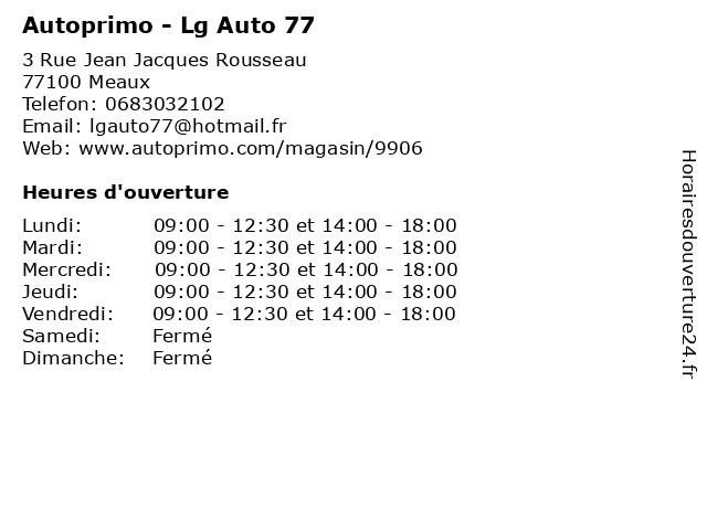 | Lundi | 09:00-12:30 et 14:00-18:00 |