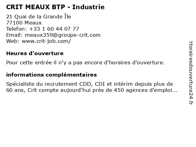 Appeler CRIT MEAUX BTP - Industrie | |