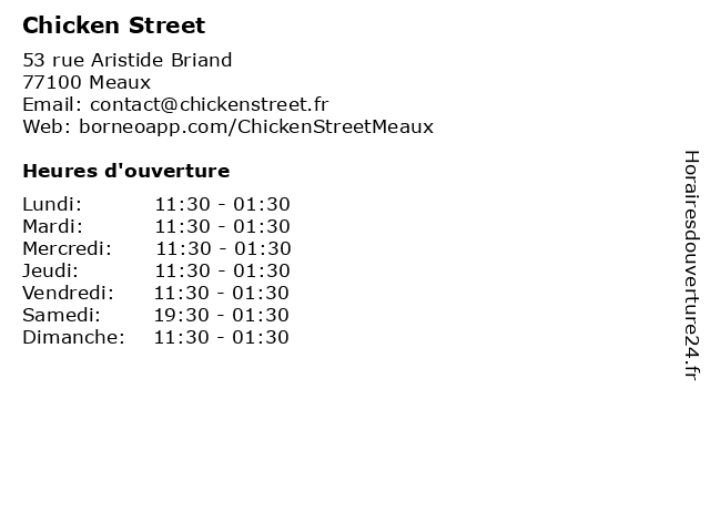 1 O'Street Food (Distance: 0,95 km) 5 Rue Des Vieux Moulins, 77100 Meaux bar, bistro, bistrot, brasserie, café, food, o'street, pub, restaurant, restauration, resto 2 Planet Chicken (Distance: 1,04 km) 55 Rue Saint-Rémy, 77100 Meaux burger, chicken, frites, planet, restaurants 3 Chicken Spot (Distance: 1,74 km) 1 Passage Pierre Brossolette, 77100 Meaux boissons, burger, chicken, frites, poulet, spot 4 BOLKIRI Lagny-sur-Marne Street Food Viêt (Distance: 16,57 km) 21 Av. Du Général Leclerc, 77400 Lagny-sur-Marne bolkiri, fast-food, food, lagny, marne, restaurant asiatique, restaurant chinois, restaurants, service de livraison de repas à domicile, street, sur, viêt 5 231 East Street (Distance: 16,65 km) - Route Nationale 3, 77410 Claye-Souilly 231, américain, bistrot, burger, burgers, east, fast, food, hamburger, menus, rapide, restaurant, restauration, street 6 B.L’s Street Food (Distance: 18,29 km) 5 avenue Georges Bataille, 60330 Le Plessis-Belleville b.l’s, boisson, burger, fasfood, food, foodtruck, street |
