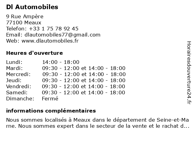 | Samedi | 09:30-12:00 et 14:00-18:00 |