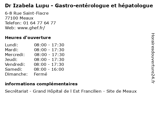 1 Dr Svitlana Maydannyk - Gastro-entérologue et hépatologue (Distance: 0,00 km) 6-8 Rue Saint-Fiacre, 77100 Meaux consultation, docteur, dr, entérologue, et, gastro, hépatologue, maydannyk, med, médecin, svitlana, traitement 2 Dr Farah Zerouala Boussaha - Gastro-entérologue et hépatologue (Distance: 0,00 km) 6-8 Rue Saint-Fiacre, 77100 Meaux boussaha, consultation, docteur, dr, entérologue, et, farah, gastro, hépatologue, med, médecin, traitement, zerouala 3 Dr Jean-Pierre Blondelot - Gastro-entérologue et hépatologue (Distance: 0,18 km) 93 Rue Saint-Faron, 77100 Meaux blondelot, dr, entérologue, et, gastro, hépatologue, jean, pierre 4 Medecin Xavier Domenigoni (hépatologue) (Distance: 3,05 km) 1143 Charles de Gaulle, 77100 Mareuil-les-Meaux docteur, domenigoni, hépatologue, medecin, sante, services, xavier 5 Dr Claude Chayette - Gastro-entérologue et hépatologue (Distance: 15,56 km) 2-4 cours de la Gondoire, 77600 Jossigny chayette, claude, consultation, docteur, dr, entérologue, et, gastro, hépatologue, med, médecin, traitement 6 Dr Sadek Cheaib - Gastro-entérologue et hépatologue (Distance: 15,56 km) 2-4 cours de la Gondoire, 77600 Jossigny cheaib, consultation, docteur, dr, entérologue, et, gastro, hépatologue, med, médecin, sadek, traitement |