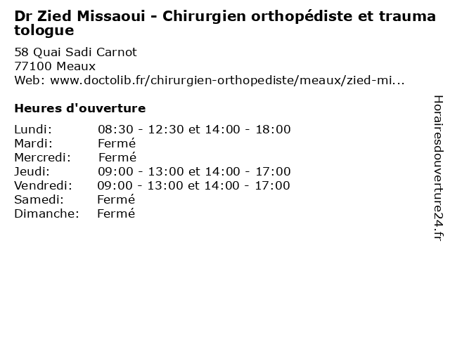 | Lundi | 08:30-12:30 et 14:00-18:00 |