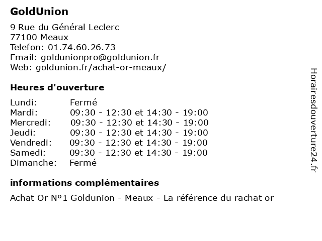 | Samedi | 09:30-12:30 et 14:30-19:00 |