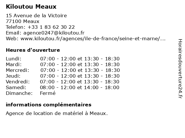 | Lundi | 07:00-12:00 et 13:30-18:30 |
