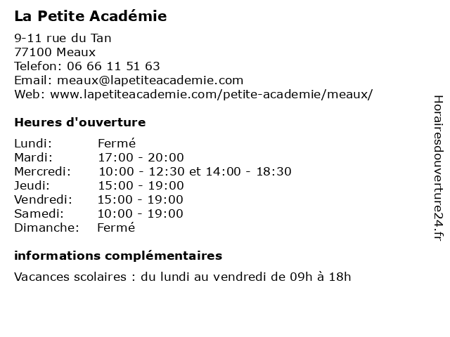 | Mercredi | 10:00-12:30 et 14:00-18:30 |