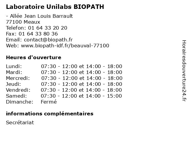 | Lundi | 07:30-12:00 et 14:00-18:00 |