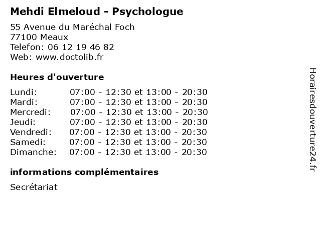 Mercredi | 07:00-12:30 et 13:00-20:30 |