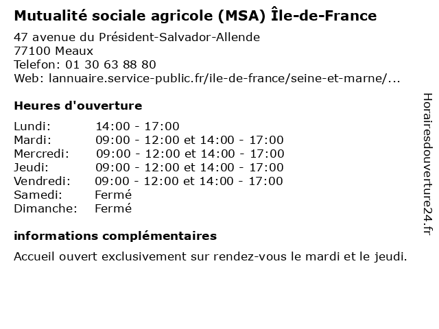 | Mardi | 09:00-12:00 et 14:00-17:00 |