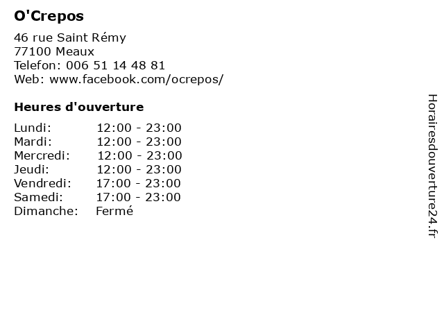 | Mercredi | 12:00-23:00 |