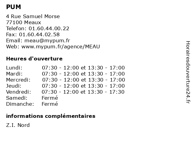 | Lundi | 07:30-12:00 et 13:30-17:00 |