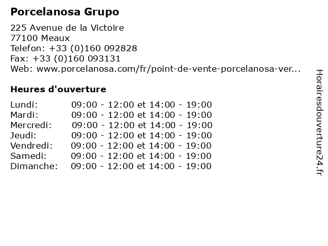 | Samedi | 09:00-12:00 et 14:00-19:00 |