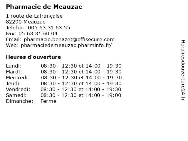 | Lundi | 08:30-12:30 et 14:00-19:30 |