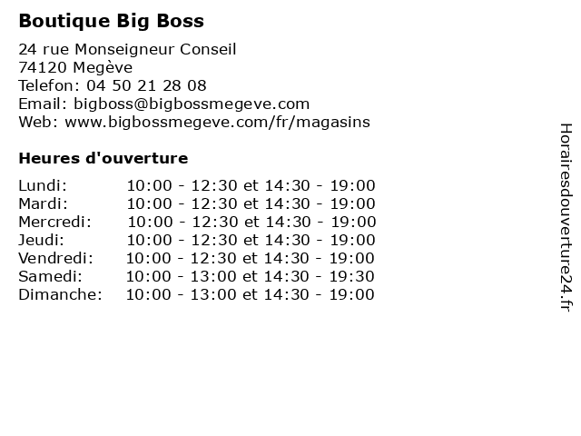 | Samedi | 10:00-13:00 et 14:30-19:30 |