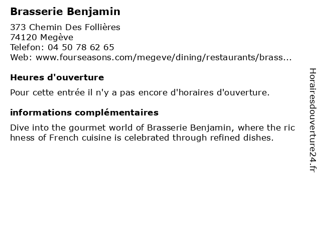 | Appeler Brasserie Benjamin | |