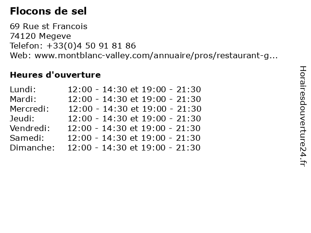 | Mardi | 12:00-14:30 et 19:00-21:30 |
