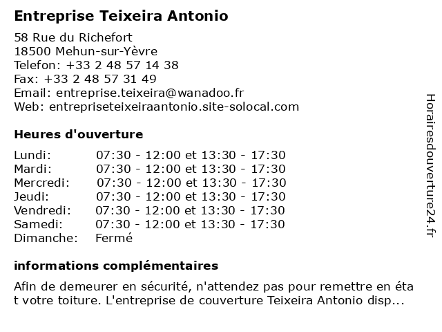 | Mardi | 07:30-12:00 et 13:30-17:30 |