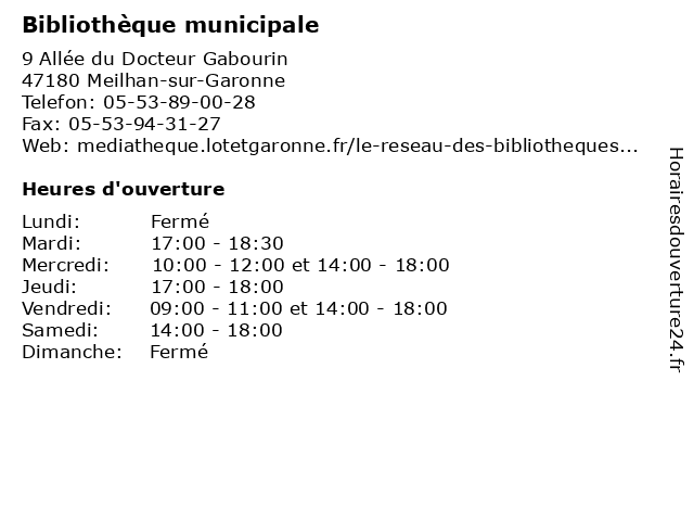 1 Bibliothèque Municipale (Distance: 14,35 km) . Métairie, 47250 Samazan bibliothèque, cd audio, cd.rom, livres, municipale, revues 2 Bibliothèque municipale (Distance: 14,46 km) 4 rue de l'église, 47430 Caumont-sur-Garonne bibliothèque, cd audio, cd.rom, livres, municipale, revues 3 Bibliothèque municipale (Distance: 18,77 km) . Le bourg, 47200 Birac-sur-Trec bibliothèque, cd audio, cd.rom, livres, municipale, revues 4 Bibliothèque municipale (Distance: 19,02 km) . Rue Traversière, 47430 Le-Mas-d'Agenais bibliothèque, cd audio, cd.rom, livres, municipale, revues 5 Bibliothèque intercommunale (Distance: 8,08 km) 17 rue Aramon Noir, 47250 Cocumont bibliothèque, cd audio, cd.rom, intercommunale, livres, revues 6 Regie Municipale Multi Services (Distance: 8,84 km) 1 Avenue du Maréchal Joffre, 33190 La Réole multi, municipale, regie, services |