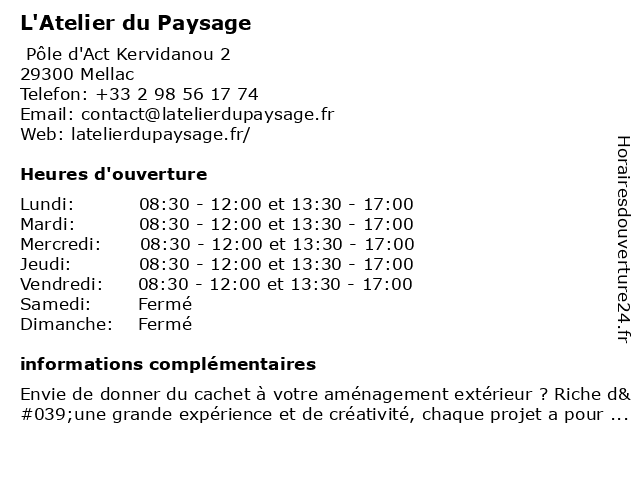 | Lundi | 08:30-12:00 et 13:30-17:00 |