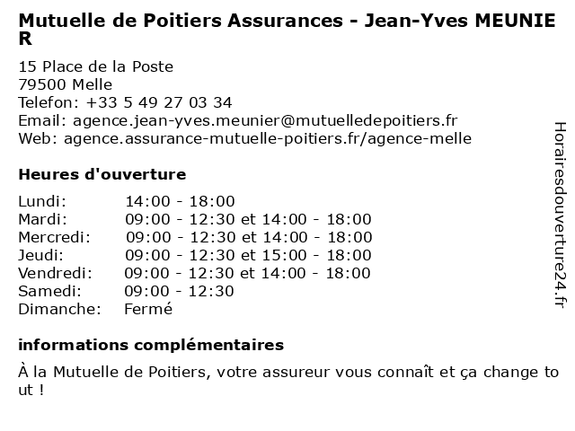 | Mercredi | 09:00-12:30 et 14:00-18:00 |